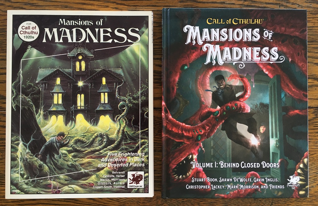 Chaosium have published “The Crack’d and Crook’d Manse” again for 7th edition in Mansions of Madness Vol 1: Behind Closed Doors. I’m so happy about this. I think it works well as an introductory scenario, because it was written immediately after my first contact with both the roleplaying game and the Mythos at large, so I had just sponged up all that inspiration. For that reason, I think it’s closer to HPL than anything I’ve done since.